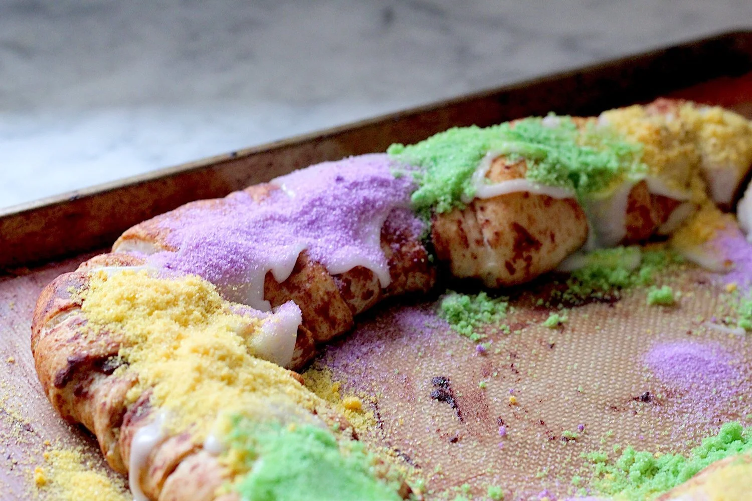The history of The King cake references the Epiphany, celebrating the visit of the Magi (three wise men) to Jesus Christ at the end of the Christmas season. In other places, it is associated with the pre-lent celebrations of Mardi Gras and Carnival. Regardless, I love the chance to find baby Jesus, and eat delicious cake! This is an easy King Cake recipe that will please any crowd.